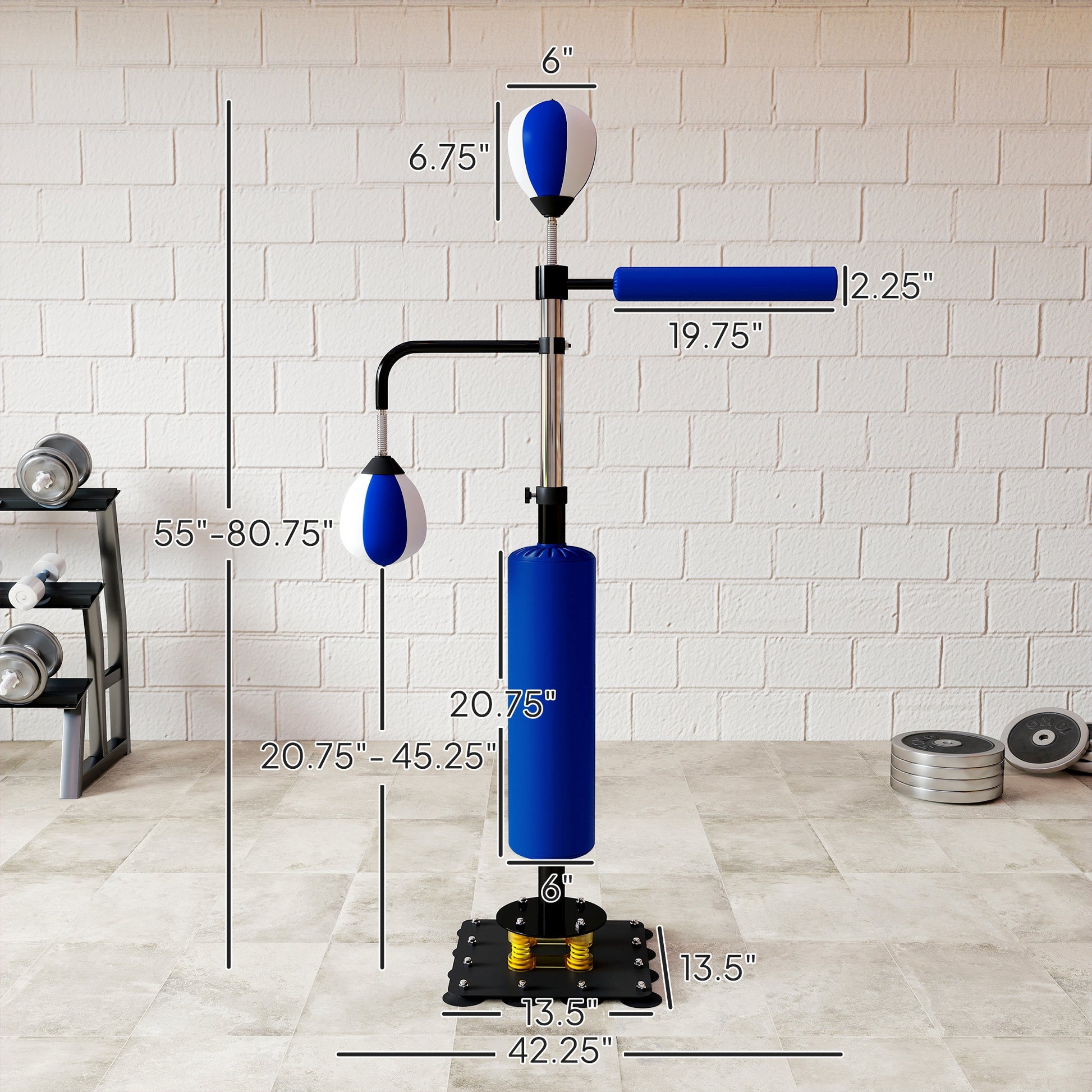 4.6'-6.7' Speed Bag Boxing Bag Stand, Reflex Bag Boxing Training Equipment, Speed Punching Bag, Blue